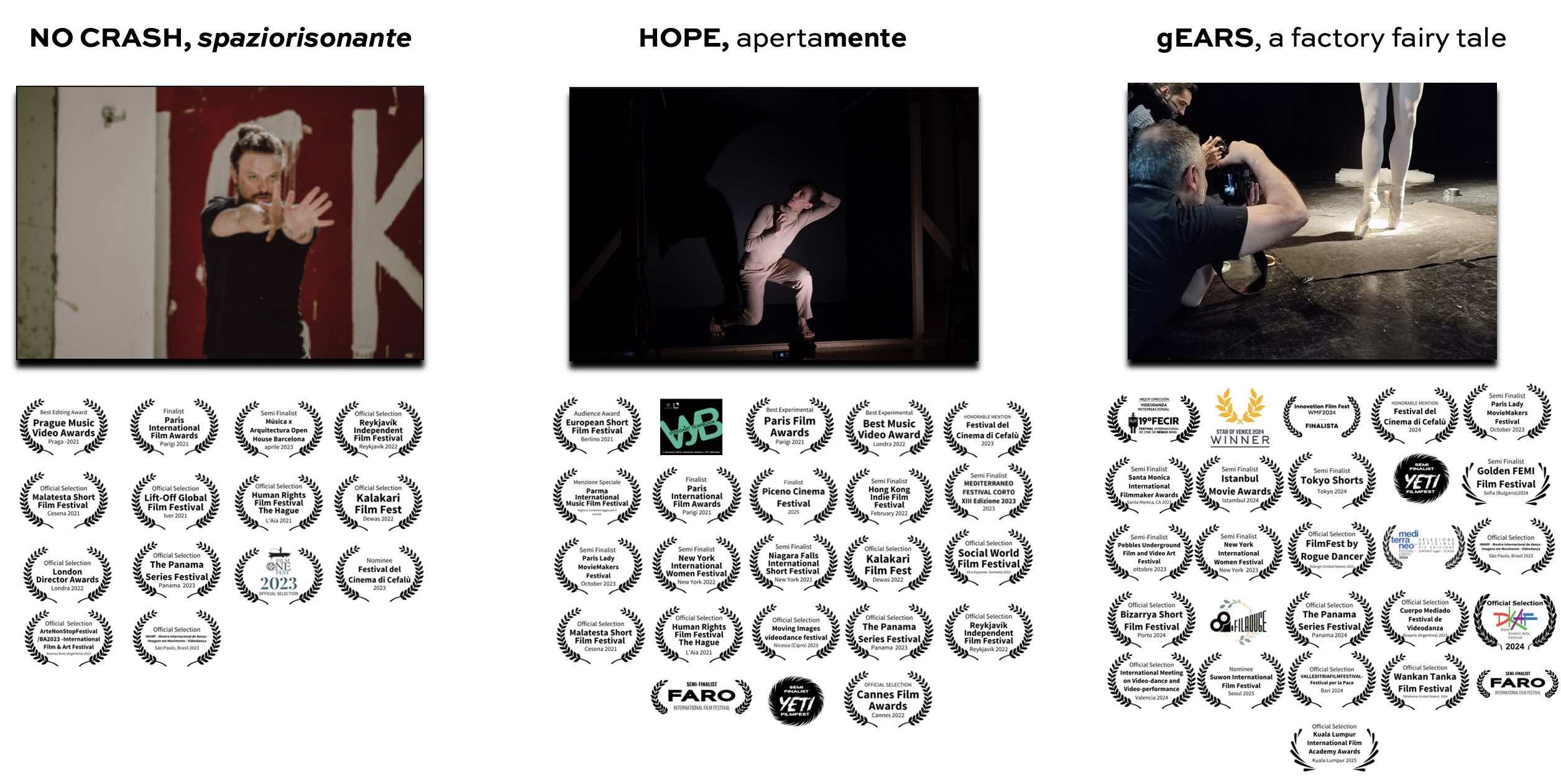 Lo spaziorisonante diventa, nella sua espressione più articolata, una vera e propria installazione bischermo, uno spazio reale: un DITTICO risonante creato con i due cortometraggi “HOPE, apertamente” e “NO CRASH, spaziorisonante”.